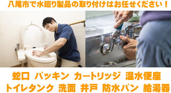 八尾市で対応可能な水廻り製品の取り付けサービスとなります。その他のトラブルはお気軽に受付スタッフまでご相談ください。